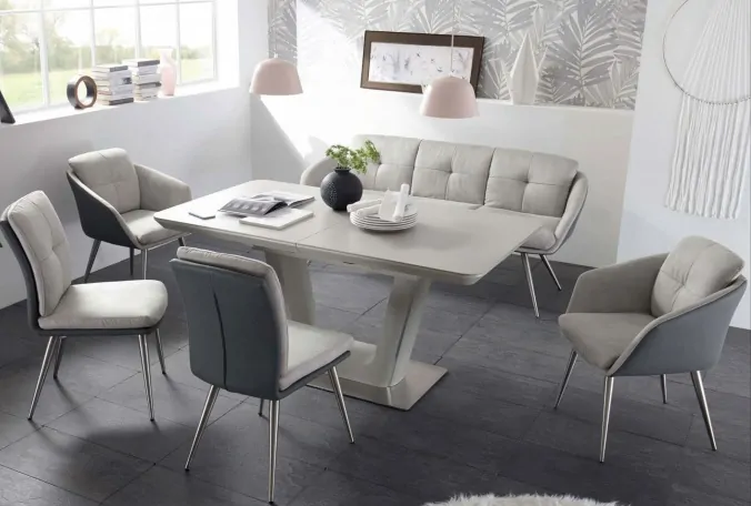 - Stół nowoczesny: Proste, minimalistyczne formy, często w wysokim połysku lub w połączeniu szkła z metalem. Idealny do wnętrz glamour i modern classic.